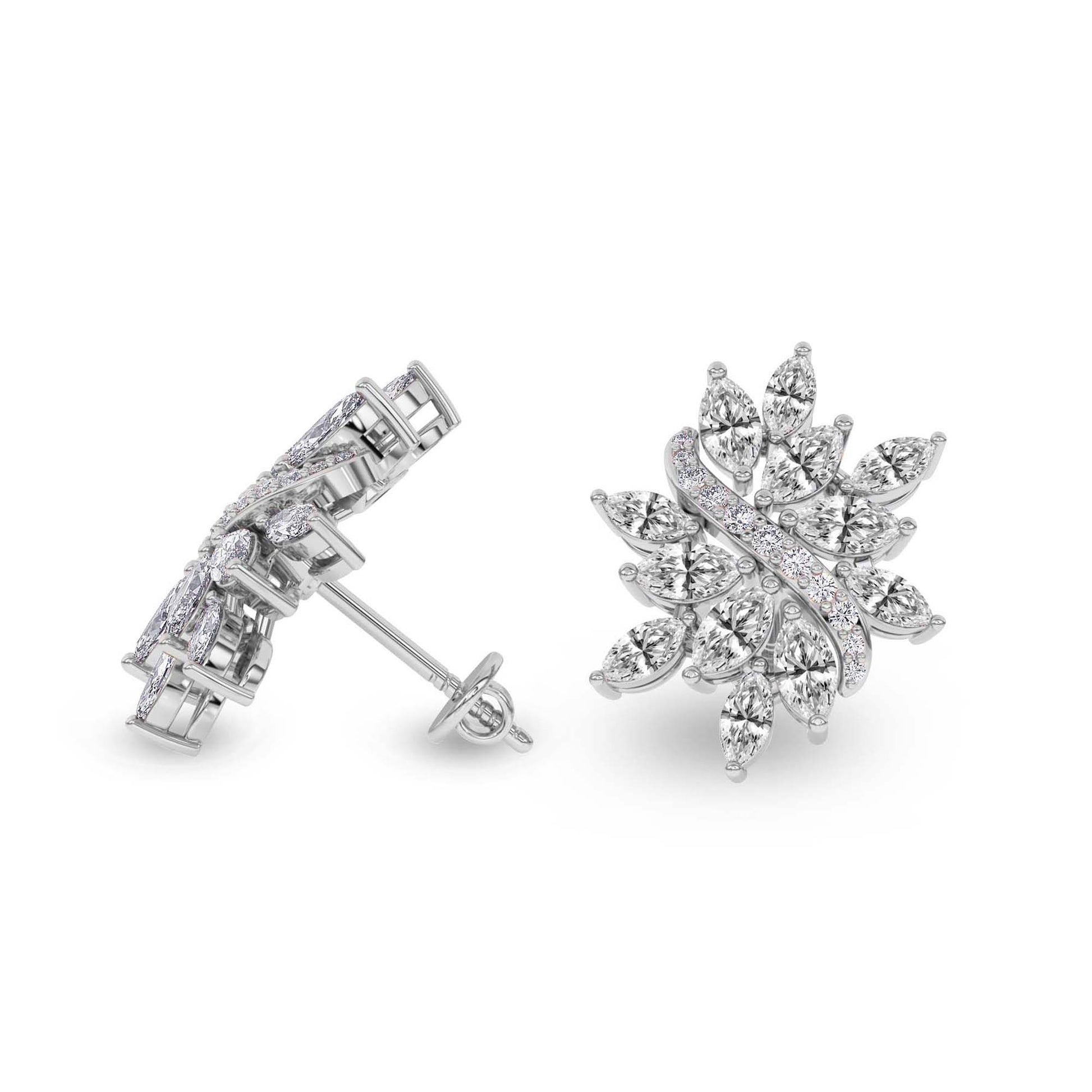 Inspired by nature’s cascading elegance, the Wisteria Bloom Lab Diamond Stud Earrings bring a floral fantasy to life in luminous 14k gold. Featuring a dazzling 3.00 carats of F-G color, VS clarity lab-grown diamonds, this design artfully combines marquise and round cuts to mimic the organic flow of wisteria petals. Each diamond is set at varying heights to create depth and dimension, while a sleek line of round diamonds anchors the center with polished symmetry. Finished with straight prong detailing, these romantic studs exude femininity, grace, and high fashion allure.